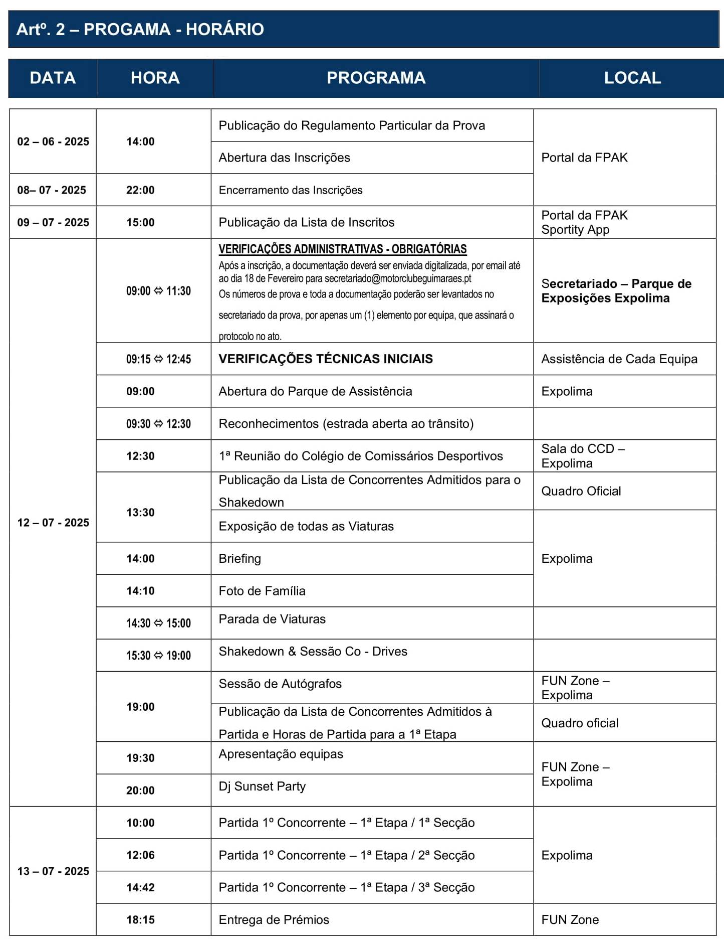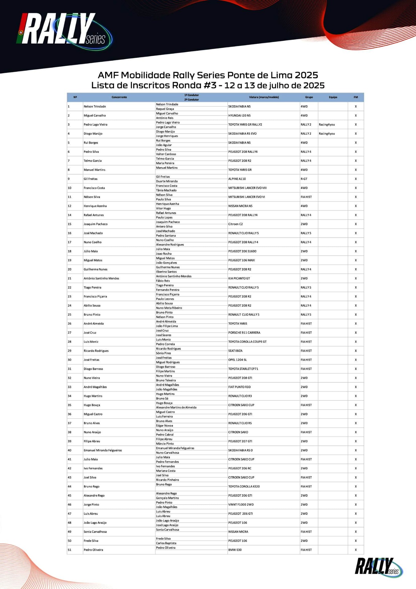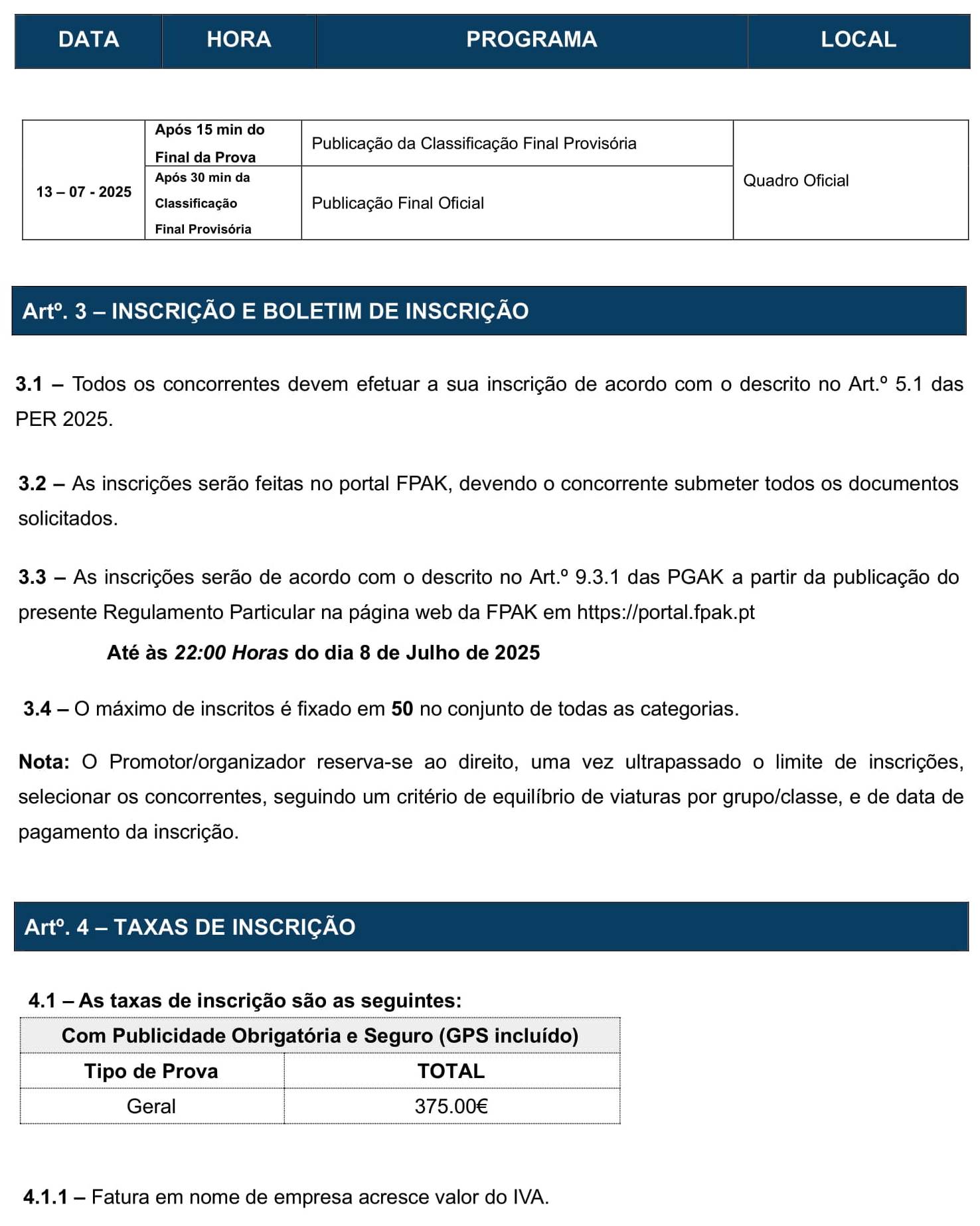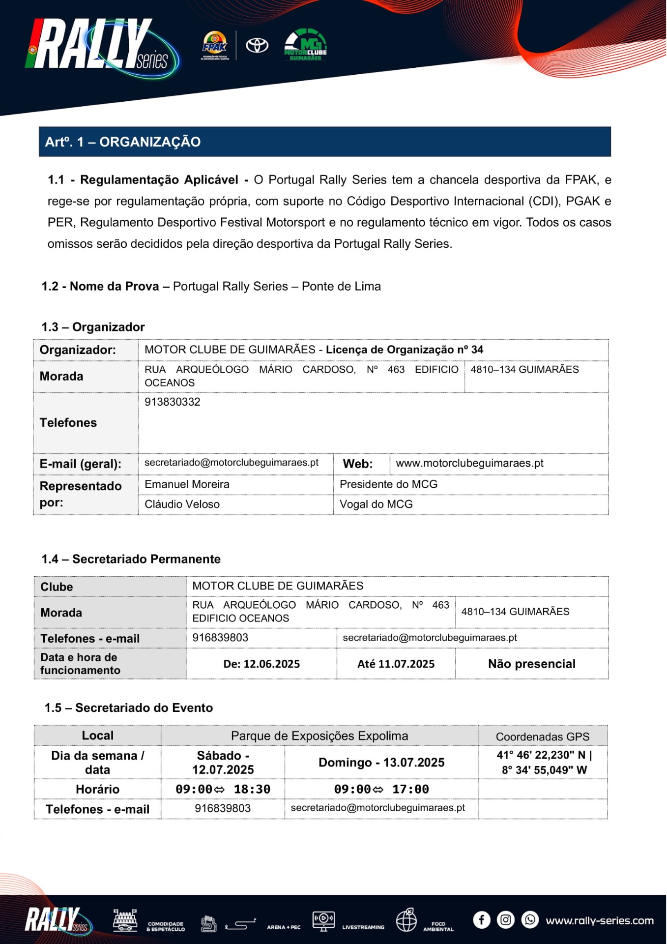 Lista de Inscritos + Roadbook + Aditamento N.º 1 + Regulamento Particular + Mapa Controlos + Informação do Percurso + Lista de Concorrentes Admitidos