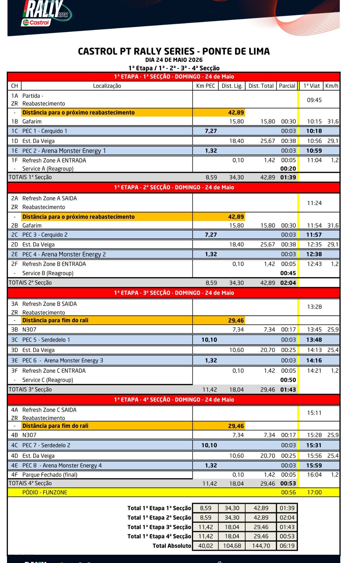 Mapa Controlos, Itinerários e Horários